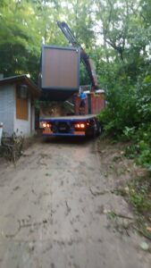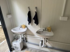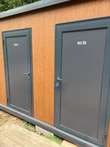 Práce trvali průběžně 2 týdny a 27.6.2025 v Pátek nám nové toalety přivezli a usadili.